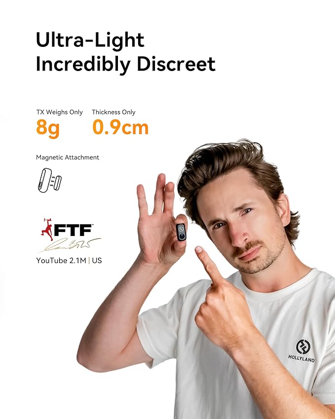 • 【Ultra-Light Magnetic Mic】8g wireless mini microphone, 9mm thin, magnetically attaches to collars/hats for hidden recording. All-day comfort, high-quality audio anywhere—ideal for sports vlogging, travel filmmaking and long shooting. Small size, light weight, but powerful.