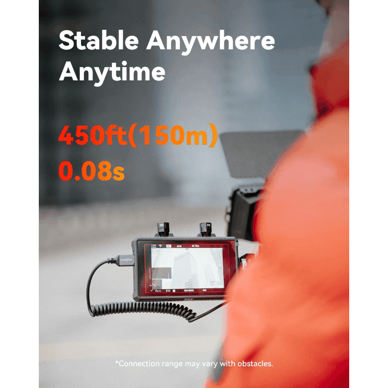 The Mars M1 Enhanced provides an exceptional wireless video transmission range of 450ft (150m). With an ultra-low latency of 80ms, it virtually eliminates lag, guaranteeing stable and reliable wireless signal and delivering high-quality image monitoring overall.